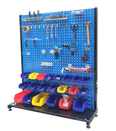 配置:配2塊百頁(yè)掛板,4塊方孔掛板,底部可配兩定向兩萬(wàn)向帶剎車輪。